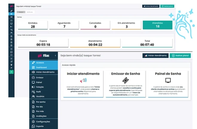 Reduza o tempo de espera, organize seu ambiente e monitore em tempo real o desempenho da sua equipe e a satisfação dos seus clientes.